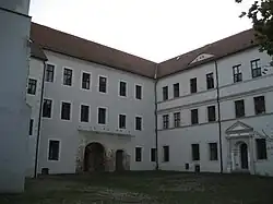 Das Schloss ist als unregelmäßige Dreiflügelanlage um einen nach Nordosten offenen Hof angelegt. Es besteht aus dreigeschossigen Putzbauten. Der langgestreckte Südflügel hat in der Mitte eine Tordurchfahrt mit Tonnengewölbe. Die Gewölbe der Kellerräume stammen aus dem Mittelalter. Im Erdgeschoss befinden sich Gewölbe mit Stichkappen.