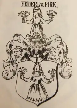 1597 verlieh Landgraf Georg Ludwig dem leuchtenbergischen Kanzler und Lehenprobst Dr. Johann Federl († am 20. Juni 1626) die Gemeinherrschaft und die Niedergerichtsbarkeit über Pirk. Das Patronatsrecht über die Kirche, den Kirchtagschutz und den Blutbann behielt sich der Landgraf vor. Bereits 1595 wurde dem Dr. Johann Federl die Errichtung eines Bräu- und Malzhauses genehmigt, wogegen die Stadt Weiden erfolglos Beschwerde erhob. Pirk wird bei dieser Auseinandersetzung als „altgefreiter adeliger Sitz“ bezeichnet. 1647 ist Sebastian Federl der Besitzer. 1667 sitzt Maximilian Adam Federl auf Pirk. Der letzte aus dieser Familie ist Johann Leopold Federl, Pfarrer von Straubing († am 16. Januar 1734); seine Schwester Maria Antonia Federl von Pürckh, die eine großzügige Stiftung für die Pirker Kirche getätigt hat, war Kammerdienerin der Kaiserin Elisabeth in Wien. Nach dem Leuchtenberger Salbuch von 1719 waren in Pirk vier Grundherrschaften: Pfarrei Schirmitz, Pfarrei Luhe, Pflegamt Parkstein und die Grundherrschaft mit dem Niedergericht des Landsassengutes Pirk. Zu letzterer gehörten das Schloss, der Meierhof, das Bräuhaus und die Pirkmühle sowie auch drei Höfe der Hofmark Schirmitz. Ab 1748/49 sind hier die Federl’schen Erben genannt, zu dem Landsassengut gehörten damals 19/16 Höfe. 1755 wird das Landsassengut an die Herren von Riesenfeld verkauft. Am 24. Mai 1754 hat Johann Joseph von Riesenfeld, Lobkowitzischer Oberbeamter zu Neustadt an der Waldnaab, bei der kurfürstlichen gewordenen Regierung von Leuchtenberg die Landsassenpflicht wegen des käuflich erworbenen Gutes Pirk abgelegt. Er ist 1775 zu Neustadt verstorben und zwei Epitaphien in der dortigen Pfarrkirche St. Georg sind ihm und seiner Gemahlin Maria Magdalena gewidmet. In Pirk erinnert an ihn die von ihm in Auftrag gegebene Statue des Hl. Nepomuk.