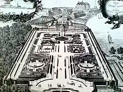 Nach dem Ende des Herzogtums verwilderte der Garten aufgrund mangelnder Pflege und wurde später zum Teil als Nutzgarten verwendet. Im 19. Jahrhundert wurde der Park durch den Landschaftsarchitekten Christian Schaumburg der damaligen Mode entsprechend zum Landschaftsgarten englischer Prägung umgestaltet. Die großen Lindenalleen wurden nicht gefällt, sie sind bis heute erhalten und rahmen die Fläche des ansonsten verlorenen barocken Gartens ein, dessen Grundzüge aus der Luft noch zu erkennen sind. 1930 wurde im hinteren Drittel des Parks eine Sportbahn errichtet.[31]