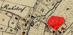 Das Schloss Rahstorf lag 50 m östlich der Kleinen Laber. An der Stelle von Schloss Rahstorf befand sich zuvor eine Turmhügelburg. Heute steht hier ein Bauernhof mit seinen Wohn- und Stallgebäuden auf einer mäßig künstlichen Erhöhung. Eine ringförmige Grabensenke lässt sich noch erahnen. Der Sitz war ein „ganz von Holz erbautes Herrenhaus“, dieses wurde bereits zu Beginn des 18. Jahrhunderts wegen Baufälligkeit geschleift und abgetragen.