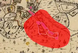 Seit 1833 Benefiziaten-, dann Pfarrhaus, zweigeschossige Trakte mit Satteldächern über unregelmäßigem Grundriss, Kernbau mittelalterlich, 1577 erneuert; Torhaus, ehemalige Kanzlei, später Stall, zweigeschossiger Walmdachbau mit segmentbogiger Tordurchfahrt, gleichzeitig; Ringmauer, zum Teil mit mächtigen Strebepfeilern, Bruchstein, wohl 16./17. Jahrhundert; Nebengebäude, eingeschossiger Steildachbau, wohl 19. Jahrhundert.[1]