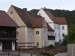 Das ehemalige Hammerschloss ist ein spätgotisches dreigeschossiges und traufständiger Giebelhaus mit seitlich versetztem Erkerhaus von 1586 (bez.); dieser Bau wurde von Hans Melchior Sauerzapf errichtet. Der zweigeschossige Flügelbau mit Satteldach und profiliertem Steinportal stammt wohl aus dem 17. Jahrhundert. An das Schloss schließt die ehemalige Schlossschänke an.