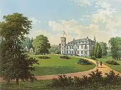 Gustav Vincent Graf von Hompesch ließ die alte Burg 1787[1] niederlegen und bis 1790 ganz in der Nähe ein neues Gebäude errichten. Dieses Herrenhaus wurde im Stil des Rokoko erbaut. In den Jahren von 1860 bis 1870[4] wurde es im Stile der Neogotik verändert und erhielt Anbauten zur Vergrößerung. An der Nord-Westseite zum Hof hin fügte Alfred Polycarp Graf von Hompesch-Rurich 1862[5] einen polygonalen Eckturm mit Zinnenkranz hinzu, die neue Schlosskapelle wurde 1865 eingeweiht.[1] Des Weiteren wurde in den 1860er Jahren ein Bibliotheksbau angefügt.