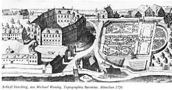 Eine erste Niederungsburg wurde wohl im 12./13. Jahrhundert vom Geschlecht der Sünchinger erbaut, erstmals erwähnt wurde es 1395. 1573 erwarb es Georg Ludwig der Ältere Freiherr von Seinsheim. Nach dem Dreißigjährigen Krieg wurde es als Pestkrankenhaus genutzt und danach niedergebrannt. An dieser Stelle ließ Freiherr Christian von Seinsheim 1668 ein steinernes Wohnhaus errichten. Joseph Franz Graf von Seinsheim ließ 1758 vom damaligen Münchner Hofbaumeister François de Cuvilliés dem Älteren die heutige Wasserburg erbauen. Nach dem Tod der letzten Gräfin Seinsheim kam es in den Besitz ihres Enkels, des Freiherrn von Hoenning O’Carroll. Das Schloss wird seitdem von ihm und seiner Familie bewohnt. Es ist, außer im Rahmen besonderer Veranstaltungen, nicht zu besichtigen.