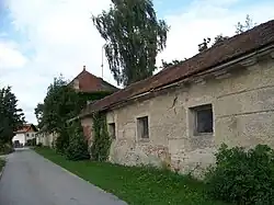 Der Ökonomiehof des Schlosses besteht aus einem östlichen giebelständigen Stadel mit Krüppelwalmdach und Wohnungen und einem westlichen traufständigen Stadel mit Krüppelwalmdach und Aufzugsgaube, an dem ein weiterer Stadel mit Halbwalm- und Walmdach angebaut ist. Das Torhaus mit Toreinfahrt ist ein eingeschossiger Krüppelwalmdachbau (teilweise erneuert) mit zwei Pfeilern mit Aufsätzen. Die östliche Schlosseinfahrt mit Allee, ein Tor aus zwei Pfeilern mit Aufsätzen und zwei Remisen und eingeschossigen Satteldachbauten stammt aus dem 1. Viertel des 18. Jahrhunderts.