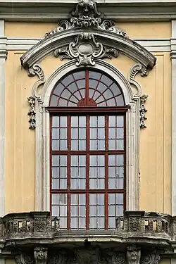 Der Nordflügel wird durch einen wenig hervortretenden, mit Kolossalpilastern gegliederten Mittelrisalit betont. In der Mittelachse befand sich ursprünglich ein großes, rundbogiges Tor mit seitlich kleineren Toren. Der Ostflügel ist ebenfalls mit einem zur Schlossauffahrt ausgerichteten Mittelrisalit (bekrönt von Wappenkartuschen) mit einer ansehnlichen Durchfahrt zum Hof gestaltet; der Westflügel ist schlicht gehalten.