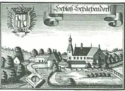 Nach dem Stich von Michael Wening von 1721 war Schachendorf ein leicht abgewinkelter zweigeschossiger Bau. Im Osten ist ein Turm mit einer barocken Zwiebelhaube. Vermutlich steht die heutige Dorfkapelle (von 1888) an derselben Stelle. Zu der Anlage gehören einige Wirtschaftsbauten, die von einem einfachen Palisadenzaun umschlossen sind. Der Zugang wird von einem Torturm bewacht.