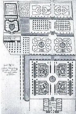Im Stil des Barock wurde zwischen 1701 und 1706 ein Garten angelegt. Dieser bestand aus dem Parterre, einem flachen Gartenbereich mit zentralem Fontänenbassin vor dem Schloss, einem Kanal und drei Terrassen mit Treppen und Kaskaden in der Mittelachse. Im Jahr 1705 wurde zusätzlich eine Lindenallee angelegt. Diese Allee bestand aus 260 Bäumen und überquerte den Fluss Emmer. In den Jahren 1832 und 1865 wurde der Garten umgestaltet. Seit 2006 wurde der barocke Zustand im Süden des Parkes rekonstruiert und 2009 eröffnet.