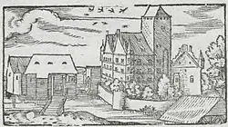 Das Schloss war ein blockhafter, viergeschossiger Walmdachbau, der Kern stammt aus dem 16. Jahrhundert. Im Laufe der Jahrhunderte wurde es mehrfach verändert. 1509 kauften die Fugger die Hofmark und renovierten das heruntergekommene Wasserschloss, das während des Dreißigjährigen Kriegs vollkommen verwüstet wurde. 1809 verkaufte Joseph Hugo Graf Fugger das völlig ruinöse und unbewohnbare Schloss an Bischof Clemens Wenzeslaus von Augsburg.