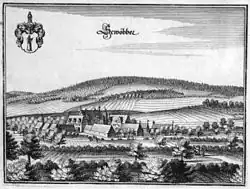 Dem Schloss samt Zehntscheune und umgebender Wassergräben war ursprünglich ein Wirtschaftshof vorgelagert, sodass die Anlage auch nach der vierten Seite abgeschlossen war. Eine der Töchter Hilmars des Jüngeren, Hedwig, heiratete 1607 Gerhard Clamor von dem Bussche; das Ehepaar baute sich auf dessen Gut Hünnefeld im Osnabrückischen ein neues Schloss nach dem Vorbild Schwöbbers, allerdings in schlichten Barockformen, anstelle des Renaissancedekors.