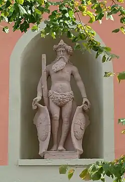 Obwohl man umfangreiche Planungen anstellte, die stark beschädigte Residenz wieder aufzubauen, beschränkten sich die Bautätigkeiten jedoch im Wesentlichen auf Instandhaltungsmaßnahmen und Ausbesserungen im Saal-, Küchen- und Kellerbereich. Ein von Johann Garny 1789/90 gezeichneter Stadtgrundriss zeigt, dass das Gelände, auf dem einst die Reste des ältesten Schlossflügels standen, zu einer geometrisch angelegten Grünanlage eingeebnet worden war.[17] Zwischen 1833 und 1835 ließ der Weinhändler C.F. Sexauer auf der Grünfläche ein Weingut errichten.[12] Das Gebäude, das sich in Struktur und Anlagen noch weitgehend erhalten hat, wurde 1960 von der Stadt erworben und dient heute als Rathaus.[18]