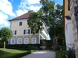 Der dreigeschossige Bau mit Walmdach ist von einem 3 Hektar großen Park umgeben. Ein in Deutschland einzigartiger versunkener Garten sowie das größte Lindenplateau Bayerns mit 120 Linden sind Bestandteil des prachtvollen Parks.