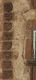 Auf dem Polygonsegment, rechts von diesen Inschriften befindet sich noch unter dem Fester im dritten Stockwerk ein unbeschriftetes und undatiertes Wappen der Familie von Ketten.