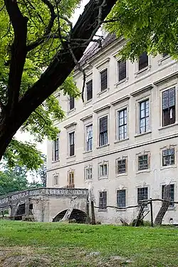 Der viergeschoßig angelegte Bau ist von einem trockengefallenen Wassergraben umgeben. Durch das dreischiffige Foyer betritt man den Hof, dessen Ecken halbrund vorgebaut sind. Gegenüber liegt die Schlosskapelle mit einer Ausstattung aus Marmor und einer Kopie des Bildnisses Mariae Verkündigung von Franz Anton Maulbertsch (1724–1796). Das Original befindet sich in der Österreichischen Galerie des Barockmuseums im Schloss Belvedere in Wien.