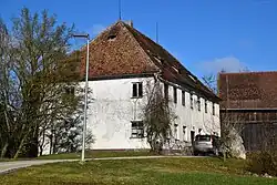 Das ehemalige Schloss ist jetzt das umgebaute Wohnhaus eines Bauernhofes. Es ist ein zweigeschossiger Walmdachbau aus dem 18. Jahrhundert; auf dem Türsturz findet sich die Jahreszahl „1811“.