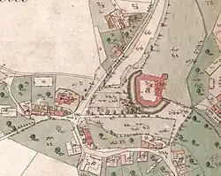 In der Nordwest-Ecke stehen die beiden rechtwinkelig zueinander angeordneten, schlichten Schlosstrakte mit hohen, pfannengedeckten Walmdächern. Der westliche Flügel stammt im Kern noch aus dem 16. Jahrhundert, was eine mit der Jahreszahl 1592 beschriftete Feuermauer beweist.[1] Der Nordflügel stammt im Kern aus dem 17./18. Jahrhundert und besitzt einen zweischiffigen Keller.[1] Er ersetzte in der Zeit zwischen 1672 und 1836 den alten mittelalterlichen Bergfried samt Wohnbauten.[2]