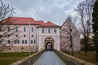Südflügel der Vierflügelanlage mit Putzgliederung und Risalit -