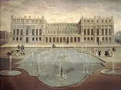 Ursprünglich von Philibert Le Roy als Jagdschloss für König Ludwig XIII. errichtet, wurde die Anlage ab 1661 unter Ludwig XIV. durch Louis Le Vau, François II d’Orbay, Jules Hardouin-Mansart und Robert de Cotte in mehreren Phasen um- und ausgebaut. Die Innenausstattung schuf Charles Lebrun, die berühmten Gartenanlagen, die aus einem Jagdpark hervorgingen, stammen von André Le Nôtre. Erst 1682 war der Riesenbau so weit vorangeschritten, dass der „Sonnenkönig“ mit seinem Hofstaat von Schloss Saint-Germain-en-Laye nach Versailles umziehen konnte. In seiner Zeit als Residenz war der Palast fast durchgehend von einem mehrere tausend Personen umfassenden Hofstaat bewohnt und bildete das kulturelle und große politische Zentrum Frankreichs.