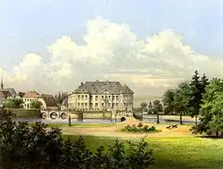 1720 ließ es Drost Johann Friedrich Ignaz mit seinen drei Brüdern Ferdinand Ernst Adam, Adolf Franz Friedrich und Mauritz Lothar von der Lippe – allesamt Domherren in Paderborn – im Stil des Barock auf einer quadratischen Insel am Heubach, einem Zufluss der Emmer, vom Baumeister Justus Wehmer errichten.
