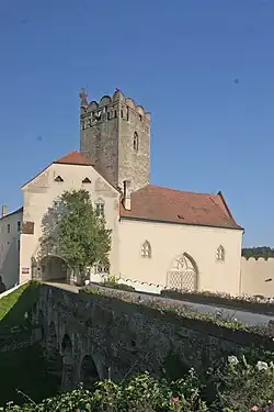 Das Schloss Vranov nad Dyjí (deutsch: Frain) gehört zur Gemeinde Vranov nad Dyjí im Okres Znojmo in Mähren (Tschechien). Es liegt an der Thaya, 18 km westlich von Znaim im Vöttauer Hügelland.