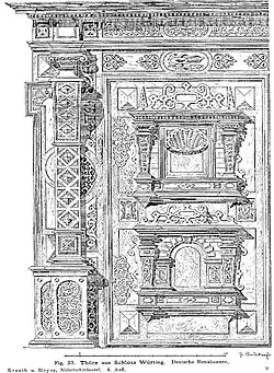 - ↑ aus: Die gesamte Möbelschreinerei mit besonderer Berücksichtigung der kunstgewerblichen Form. Theodor Krauth und Franz Sales Meyer (Hrsg.) Leipzig. 1902, S. 65. Abgerufen am 14. Oktober 2016