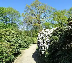 In der Nähe des Schlosses liegt der Rhododendron-Park. Er wurde am 13. Mai 1972 nach zweijähriger Gestaltungs- und Bauzeit eröffnet. Die 10.000 m² große Parkanlage beherbergt ca. 1000 Rhododendren mit 200 Sorten, 60 Arten und vielen Sorten von Bäumen und Ziersträuchern. Das Projekt wurde vom Gartenbauingenieur Karl Scholz (1912–1983), der als Begründer des Parks gilt, unter Zusammenarbeit mit Werner Dänhardt (Institut für Gartenbau in Pillnitz) und Gartengestalter Diplomgärtner Henke verwirklicht. Unterstützt wurden sie von Siegfried Sommer (TU Dresden) und vielen freiwilligen Helfern.