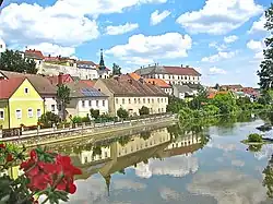 An den spätbarocken Vierflügelbau schließt nördlich ein Schlosspark an. Das ehemalige Wienertor an der Südwestecke wurde abgetragen.