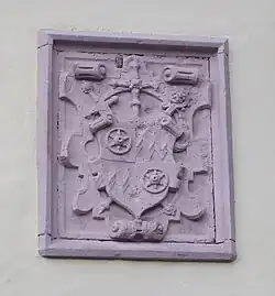 In Stein gehauene Wappen erinnern daran, dass das Anwesen Sitz des Zentgrafen der „Cent vorm Spessart“ war.