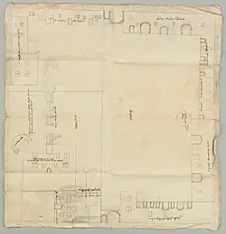- auf der Westseite ein nahezu runder Wehr- und Wohnturm aus dem 13. Jahrhundert im Norden und ein wohl um 1830 daran nach Süden angebautes zweiflügeliges Herrenhaus im klassizistischen Baustil;