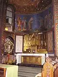 Das zentrale Apsisgemälde (Öl auf Kupfer) entwarf der nazarenische Maler Edward von Steinle, ausgeführt hat es 1866 sein Schüler Paul Franz Maria Guillery. Es zeigt die Namenspatrone des damaligen Schlossherrn und seiner Kinder. In der Rundung oben ist die thronende Jungfrau Maria mit dem Jesuskind dargestellt.
