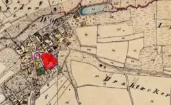 Das Schloss lag in dem Dreieck Johannesstraße, Brauhausstraße und Preppacher Straße bei der Filialkirche St. Johann Baptist. Durch schwere Brände wurde der Ort mit Kirche und Schloss wiederholt zerstört. Oberirdisch ist von dem Schloss nichts mehr erhalten.