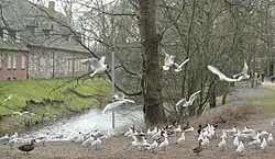 Nahe Nordsee: Möwen mischen sich unter die Enten am Graben zwischen Schlosspark und Schloss