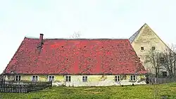 Der heutige zweigeschossige Satteldachbau mit geschwungenem Ostgiebel wurde vermutlich im ausgehenden 17. Jahrhundert errichtet. Das Wirtschaftsgebäude (Langhaus) mit nur einem Erdgeschoss besaß ein Greddach.