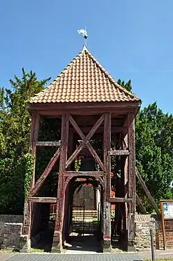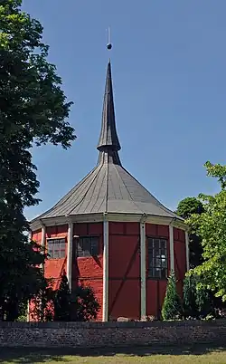 Der Kirchhof ist von einer ursprünglich 15-seitigen mit Rundbogennischen gegliederten Backsteinmauer aus dem 18. Jahrhundert umgeben, die im Süden entfernt wurde, um Platz für einen modernen Friedhof zu schaffen. Der Zugang erfolgt durch den hölzernen Glockenstuhl mit Zeltdach, der wie die Kapelle in Fachwerkbauweise errichtet wurde. Die Besucher der Kapelle müssen unter der auf 1655 datierten Glocke hindurchgehen. Die zweite Glocke von 1653 wurde ebenfalls von Rehnskiöld und seiner zweiten Frau Brita Torskeskål gestiftet.