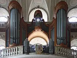 - Spielhilfen: Crescendowalze, Schweller für Echowerk, Registerfessel, Tutti, Setzeranlage