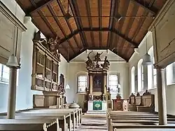 Innen ist eine Hufeisenempore eingebaut, welche wie die gesamte barocke Ausstattung aus Holz einheitlich in den Jahren von 1698 bis 1702 von Hermann Mauer geschaffen wurde.