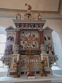 Das Hauptstück der Ausstattung ist ein bedeutender Epitaphaltar aus Sandstein. für Heinrich von Beust und seine Frau, der im Jahr 1592 von Samuel Lorentz aus Freiberg geschaffen wurde. Er ist in Form eines Flügelaltars mit Predella und Auszug gehalten; architektonisch zeigt er die Formen der Renaissance. Er zeigt in der Predella gemalt die Geburt Christi, im Zentrum ein Relief des Abendmahls, in der Bekrönung ist die Erscheinung Christi der drei Frauen am Grab dargestellt, zu beiden Seiten eingerahmt von Moses und Johannes dem Täufer. In den Flügeln sind die Stifter dargestellt, darüber die Darstellung der Sakramente Taufe und Beichte.