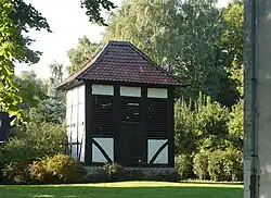 Da die Glocken nicht in der Vierungskuppel aufgehängt werden konnten, wurde 1717 neben der Kirche ein provisorisches Gerüst für die Glocken aufgestellt. Die Glocken waren hier ungeschützt dem Wetter ausgesetzt, eine der drei Glocken musste daher um 1755 wegen eines Sprunges umgegossen werden. Daraufhin beantragte die Gemeinde bei der Landesherrschaft den Bau eines Glockenhauses. Nachdem ein erster Entwurf, der einen zweistöckigen Glockenstuhl mit einem hohen Walmdach vorsah, nicht genehmigt worden war, wurde ein anderer Zimmermann beauftragt, dessen Plan eines einstöckigen Glockenhauses dann am 14. Juni 1769 genehmigt und umgesetzt wurde. Die jüngste Renovierung des Glockenhauses wurde 1993 durchgeführt, bei dieser wurde das Dach erneuert und die bis dahin offenen Schalllöcher durch Lamellenblenden verschlossen.