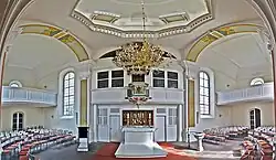 Die Quersaalkirche galt zur Zeit August Wilhelms als die für den protestantischen Gottesdienst am besten geeignete Raumform. Damit war der Kirchenbau ganz auf die Abhaltung eines reformierten Gottesdienstes abgestimmt, eine Nutzung für katholische Gottesdienste wäre nicht ohne größere Umbauten möglich gewesen. Im Gegensatz zur katholischen Kirche, in welcher der Altar in einem von der Gemeinde abgegrenzten Chorraum steht, der Laien nicht zugänglich war, steht hier der Altar in der Mitte der Kirche. Die Sitzplätze für die Gemeinde befinden sich links und rechts davon in den Kreuzarmen und den darüber liegenden Emporen und sind mit Blick auf den Altar ausgerichtet. Mit diesem Bau wollte August-Wilhelm seinen evangelischen Glauben dokumentieren und verhindern, dass sein Vater Herzog Anton Ulrich, der 1709 zum römisch-katholischen Glauben konvertiert war, seine Schlosskirche für katholische Gottesdienste nutzen konnte.