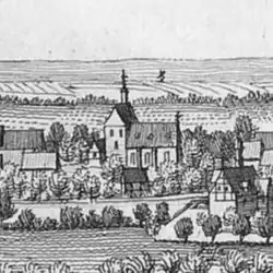 Auf dem Merian-Stich von 1654, der den Ort Salder mit seinem Schloss zeigt, ist auch die damalige Kirche dargestellt. Die Kirche hat einen romanischen Kirchturm, an den sich rechts ein gotisches Kirchenschiff anschließt. Über die Entstehung dieser Kirche gibt es keine weiteren Quellen. Der Baustil des Kirchturms lässt die Vermutung zu, dass es sich bei diesem um einen alten Wehr- oder Wohnturm aus dem 11. oder 12. Jahrhundert handelt, an den später – wahrscheinlich im 13. Jahrhundert – das gotische Kirchenschiff angebaut wurde.[5]