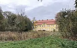 Der Park erstreckt sich südlich von Schloss Pietzpuhl und geht in die umgebende Landschaft über.