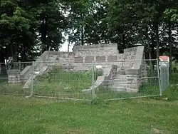 Für die im Ersten Weltkrieg Gefallenen und Vermissten entwarf der Architekt Reinhard Erasmus 1923 ein Denkmal. Es ähnelt einer Tribüne mit beidseitigen Treppenaufgängen. Vor dem Denkmal befand sich ein berieseltes Wasserbecken. Vier verwitterte Tafeln zeigten die Namen der Toten, darüber steht der Sinnspruch im Stil der Zeit: "Was Ihr uns ward`t, löschen in liebender Brust Tränen und Jahre nicht aus". Die feierliche Einweihung fand 1924 statt. Die Anlage ist (2012) stark vernachlässigt und harrt der Restaurierung.
