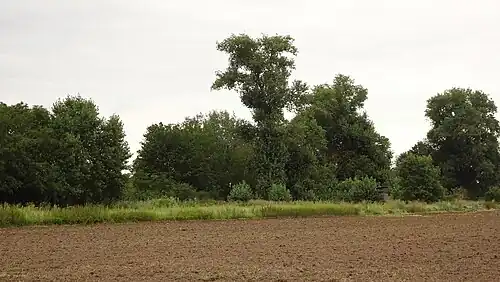 In der östlichen, feuchteren Mulde wachsen etwas Schilfrohr und Sumpf-Schwertlilie, an ihrem Rand Milchsterne und ein Bestand von Bärlauch. Die Gehölze sind vor allem Weiden und Erlen, Schwarzer Holunder und einige Hybridpappeln.[3]