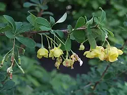 - 'Irwinii' (Syn. Berberis irwinii) ist in Wuchs und Blattform Berberis darwinii sehr ähnlich; die Blätter weisen im oberen Drittel einige Zähne auf, die Blüten sind intensiv gelb; sie wird seit 1903 kultiviert.