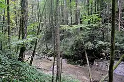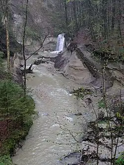 ![]() Der Buttenmühlebach mit Wasserfall im Schmalegger Tobel | ||