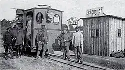 - ↑ Alfred Gottwaldt mit Beiträgen von Paul Dost, Walter Ess und Karl Sander: Heeresfeldbahnen. Bau und Einsatz der militärischen Schmalspurbahnen in zwei Weltkriegen. Transpress, Stuttgart 1998, ISBN 3-613-70818-3 und ISBN 978-3-613-01080-2. S. 89–90.