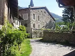 Die zum Berg zeigende Rückseite liegt an der steil ansteigenden Dorfstraße, in der Abzweigung zur Meistergasse. Diese Rückseite ist dadurch in einem flachen, ausspringenden Winkel gestaltet, der das Gebäude beim Abgang der „Faller Lahn“ (Mure des Fallerbachs, auch „Vetzaner Lahn“ genannt) am 16. Juni 1840 wahrscheinlich vor der Vernichtung gerettet hat.