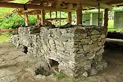 - ↑ Laut Gruber 2012, S. 127, wurden immer mindestens zwei Schmelzöfen unmittelbar nebeneinander betrieben. Während der eine Ofen im Schmelzbrand lief, konnte der Schmelzmeister mit seinen Schmelzerknechten den zweiten Ofen für den nächsten Schmelzgang vorbereiten. Außerdem wurde der zugerichtete Ofen durch die Abwärme des aktiven Ofens bereits vorgewärmt.