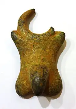 Mit der Entdeckung der Verarbeitungsmöglichkeiten von Kupfer und Bronze wurden diese in Spiralröllchen, Plättchen, Metallperlen, Ringe und Scheiben verarbeitet. Selbst Äxte und Beile hatten zunächst nur Schmuckfunktion, da sie im Verhältnis zu Steinwerkzeugen zu weich waren.[3] Die praktische Verwendung folgte der Schmuckfunktion daher mit zeitlichem Abstand. Die Verwendung organischer Stoffe wie Tierzähne oder auch Bernstein nahm entsprechend ab. In der vorchristlichen Zeit war Schmuck neben anderen Gegenständen auch Grabbeigabe. Zudem wurde Schmuck nicht nur im Endneolithikum als nonverbales Zeichensystem benutzt, mit dessen identitätsstiftenden Charakter[4] sich soziale, territoriale und religiöse Gruppen optisch differenzieren konnten.