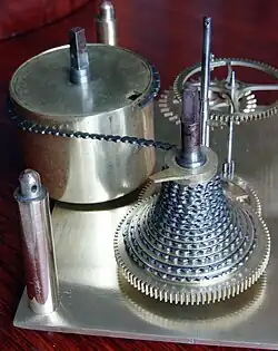 Eine Schnecke ist bei mechanischen Uhren mit Federwerk eine kegelförmige Walze mit spiralförmiger Nut, auf der ein Zugmittel (Saite, Kette o. ä.) aufgewickelt ist, das die Antriebskraft vom Federwerk aufs Gehwerk überträgt.[1] Dies dient dazu, das Antriebsmoment für die Uhr möglichst konstant, unabhängig von der Federspannung, zu halten.